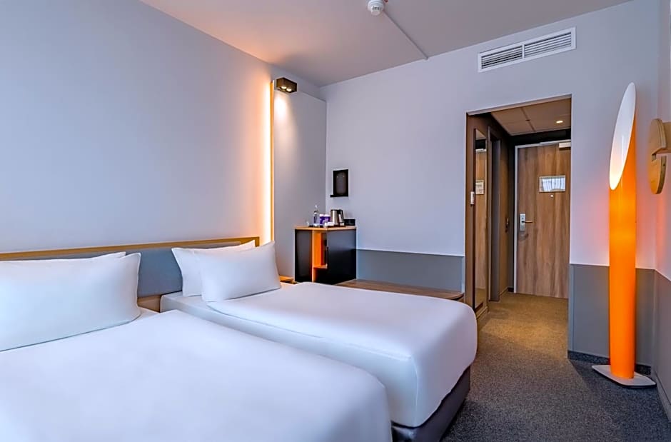 The twin room features a wardrobe, a safe deposit box, as well as a private bathroom boasting a shower and a hairdryer. The twin room has carpeted floors, a seating area with a flat-screen TV with streaming services, air conditioning, soundproof walls, as well as a tea and coffee maker. The unit has 2 beds.